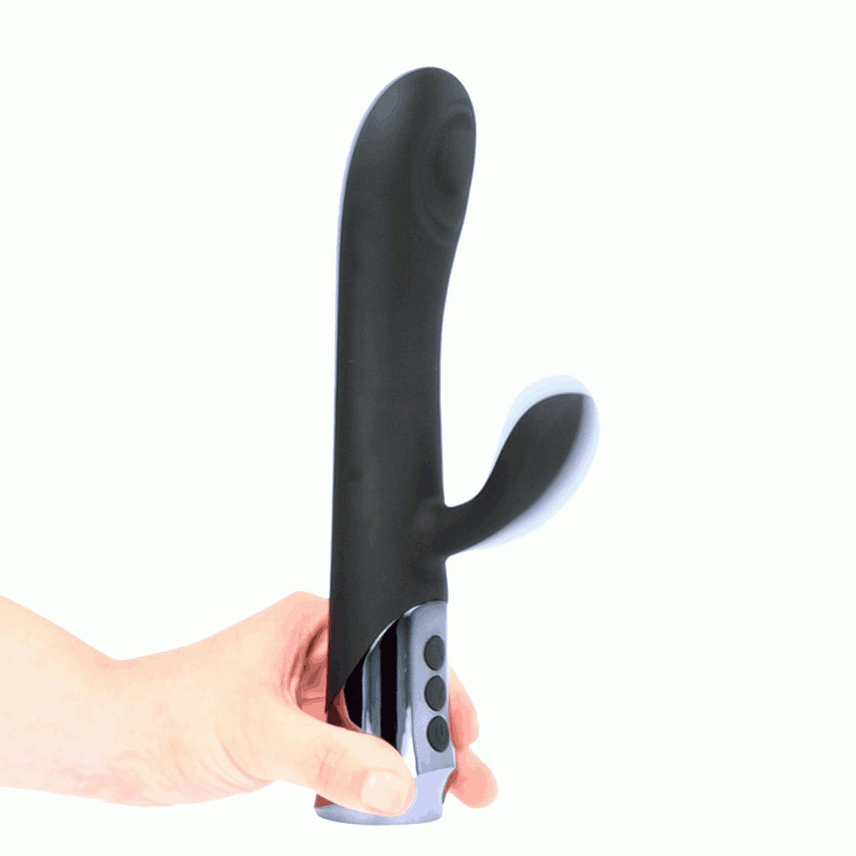 Doble estimulador vibrador realizado en silicona y recargable mediante cable magnético.