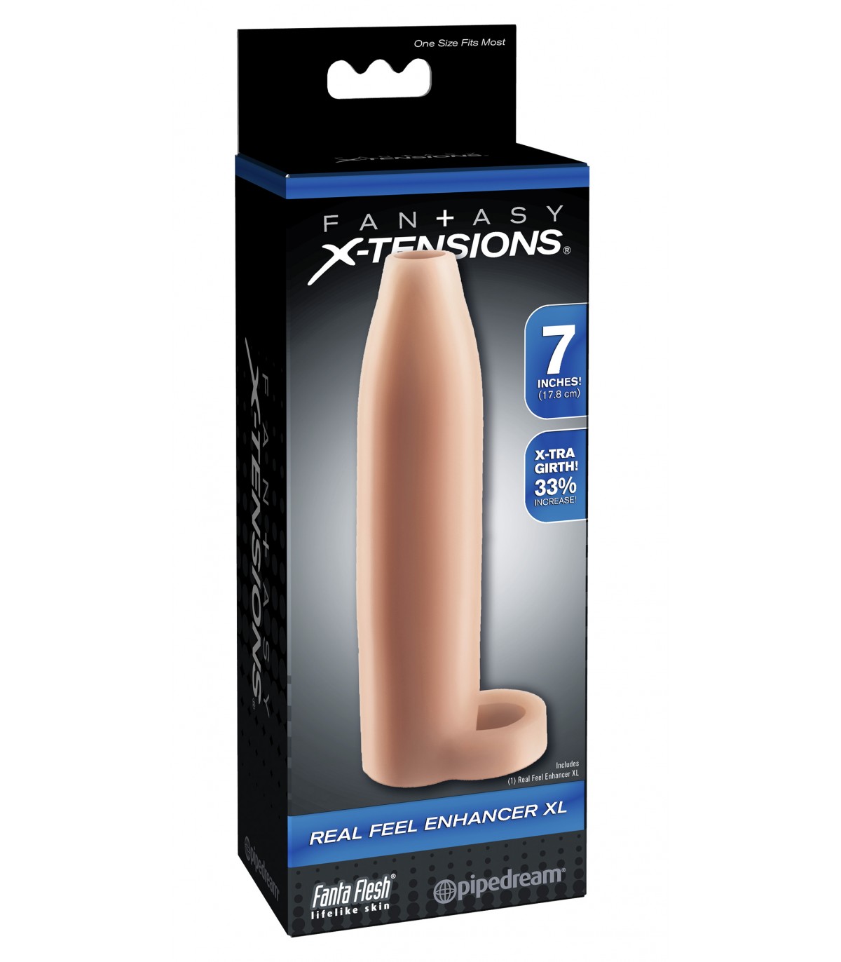 Convierte tu pene en una máquina de placer instantáneo con las increíbles Fantasy X-tensions®.Ahora puedes ser todo lo hombre que puedas ser y satisfacer a tu pareja con este potenciador de la erección fácil de usar. Desarrollado como una alternativa segura, asequible y no quirúrgica a los costosos procedimientos médicos y píldoras, ¡Fantasy X-tension® te dará la vara de placer más grande, gruesa y satisfactoria que jamás hayas imaginado! Perfecto para hombres con disfunción eréctil y problemas de rendimiento a medio camino, ¡tu nuevo potenciador brindará resultados que a ambos les encantarán!El Real Feel® Enhancer XL es una funda personalizable que se puede recortar fácilmente en la punta para un ajuste perfecto y tiene un cabezal abierto para que puedas seguir disfrutando del tacto natural de tu amante. Es súper elástica para adaptarse a la mayoría de los tamaños, lo suficientemente cómoda para ayudarte a durar más tiempo y tiene una correa para los testículos para prolongar la eyaculación y lograr un clímax explosivo. Esta funda súper realista te hace un 33 % más gruesa para ofrecerle a tu amante una sensación más completa y un clímax excepcional, mientras que el material Fanta Flesh® se siente como una segunda piel, ¡pero mejor!• Agrega un 33 % de circunferencia• La correa para testículos prolonga la eyaculación y mantiene la extensión en su lugar• Tasa ultra realista• Recorte para un ajuste perfecto